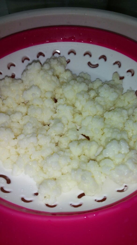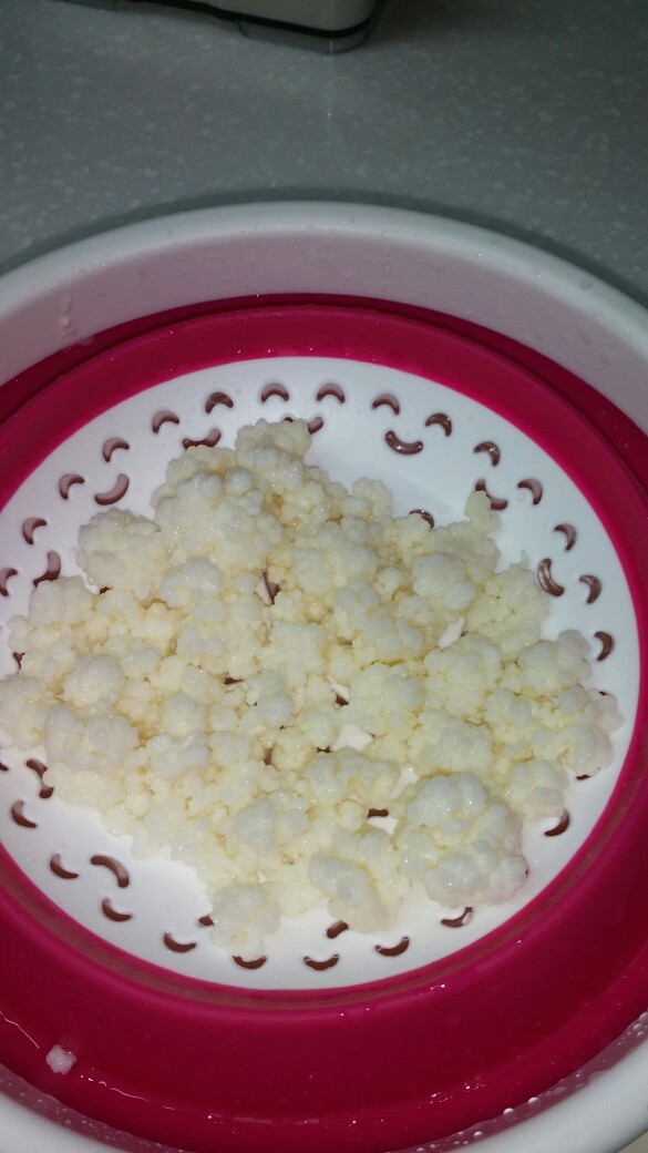 1.우유에 생육되어진 버섯을 프라스틱 체반에 건지세요.