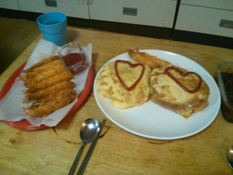 오므라이스도 새우튀김도 맛나겠어요.