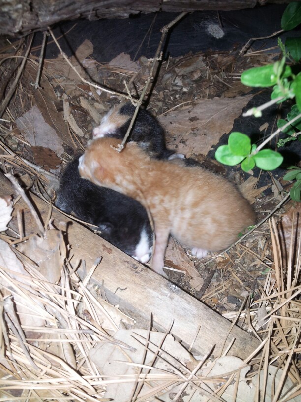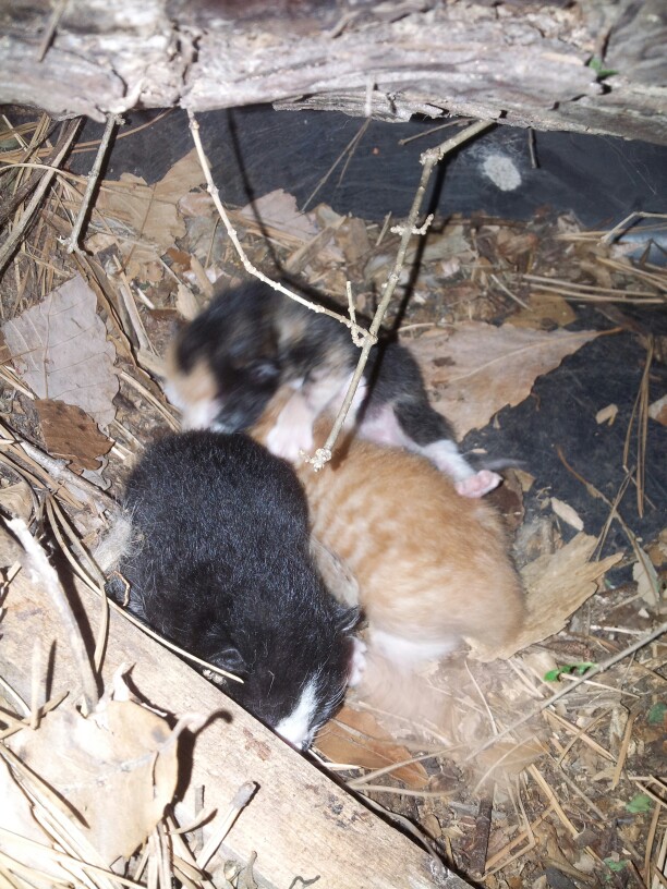 나무밑 움푹 파인곳에 어미가 있어서 봤더니 눈도 안뜬 새끼고양이가 세마리 있네요.