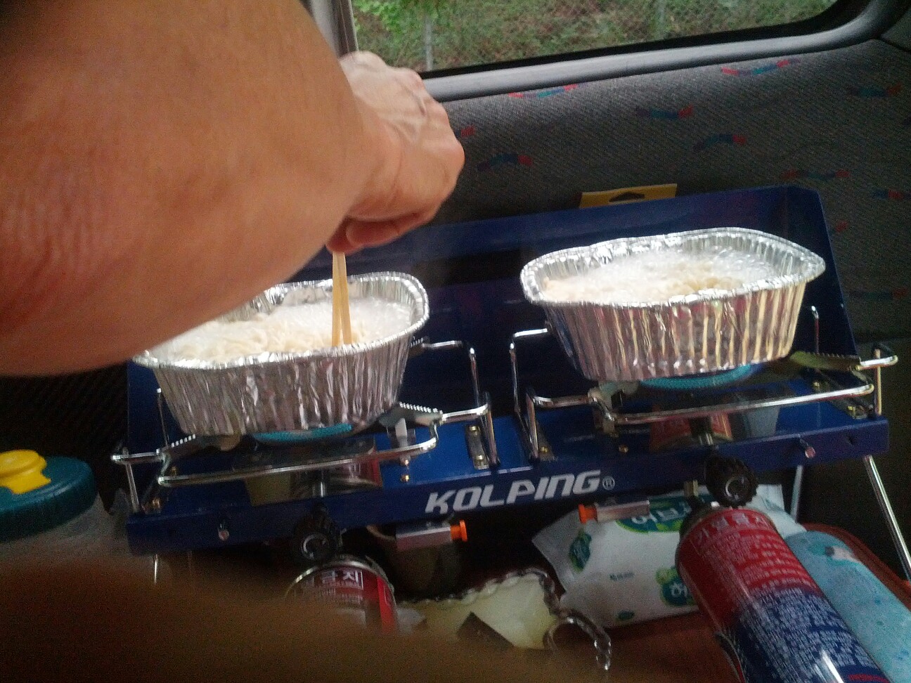 캠핑카에서 끓여먹는 짜파게티~?맛있겠네요