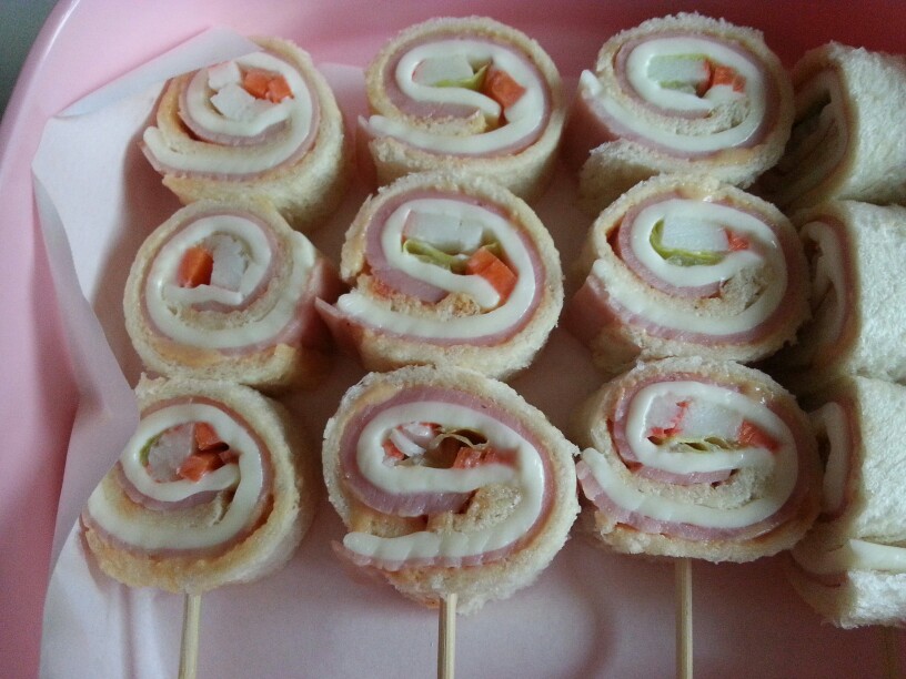 첫번째 사진 샌드위치 처럼싸서 동그랗게 말은거 아이디어가 넘조아요 더욱맛나보이고 이뿌기까지하네요