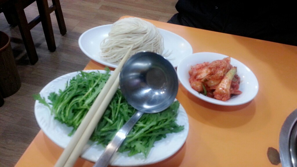 곰국에 쑥갓 파 마늘 등 넣구 국수삻아 먹어용~~ 별미에요