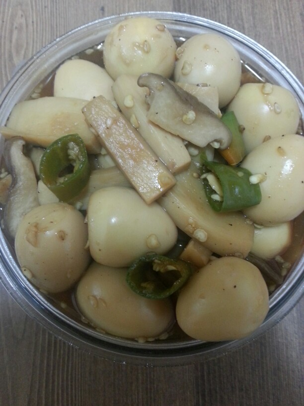 간만에 밑반찬~콩잎삭힌거 끓는물에 염분제거하고 물빼고 양념하고ㅠ200정도되는듯ㅠ넘 귀한콩잎이라 참을 인 세번ㅎㅎ되세겨가며 열심히했네요 글고 청양고추로만든 고추장물"요고요고 완젼 밥도둑이예요~글고 새송이버섯이랑 메추리알 장조림~살짝만 조렸네요 전이게조아서ㅋ