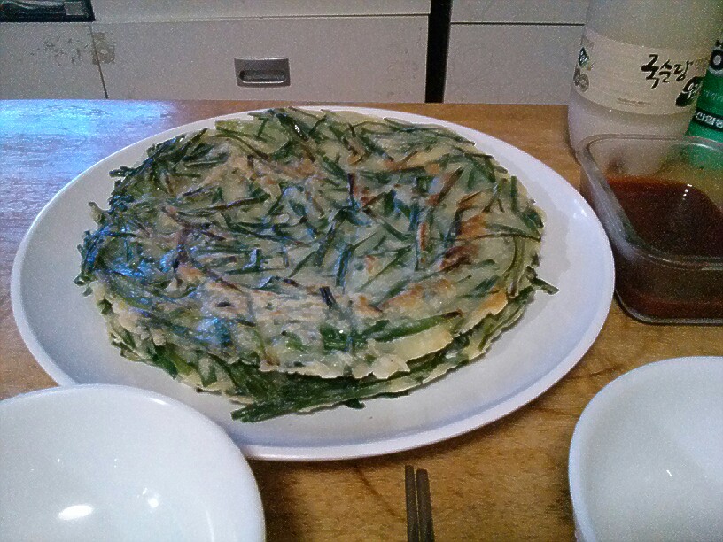 우리는 부치전에 부추무침 싸서 먹는데..ㅋ