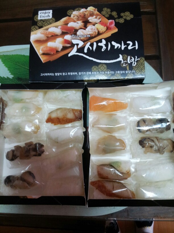 어제밤 홈플갔다가 한팩에 1000원하는 초밥에 꽂혀서 3팩다 챙겨왔네요.^^
