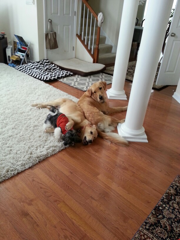 그쵸~귀엽죠..까맣게생신아이..시츄.말티믹스..짖지도않고 넘무착하고..큰 누렁이두마린 골든리트리버..꼭 세마리가껌딱지처럼 붙어다녀서 예뽀요...~~