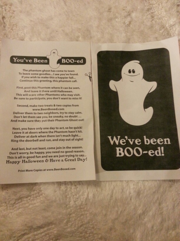 그건아니고! !~ 이거 인터넷 들어가보이까..릴레이형식이야.선물받은면 쪽지 카피해서 선물다른집에 또전달하는식.요~ Boo-boo 는 귀신이 왔다갔다는뜻 그래서 요렇게 짤라서 대문에붙여놓으면 이집은 왔다갔구나하고 선물 또 안같다놓는다고하네..풍습인가봐 할로윈..ㅎㅎ