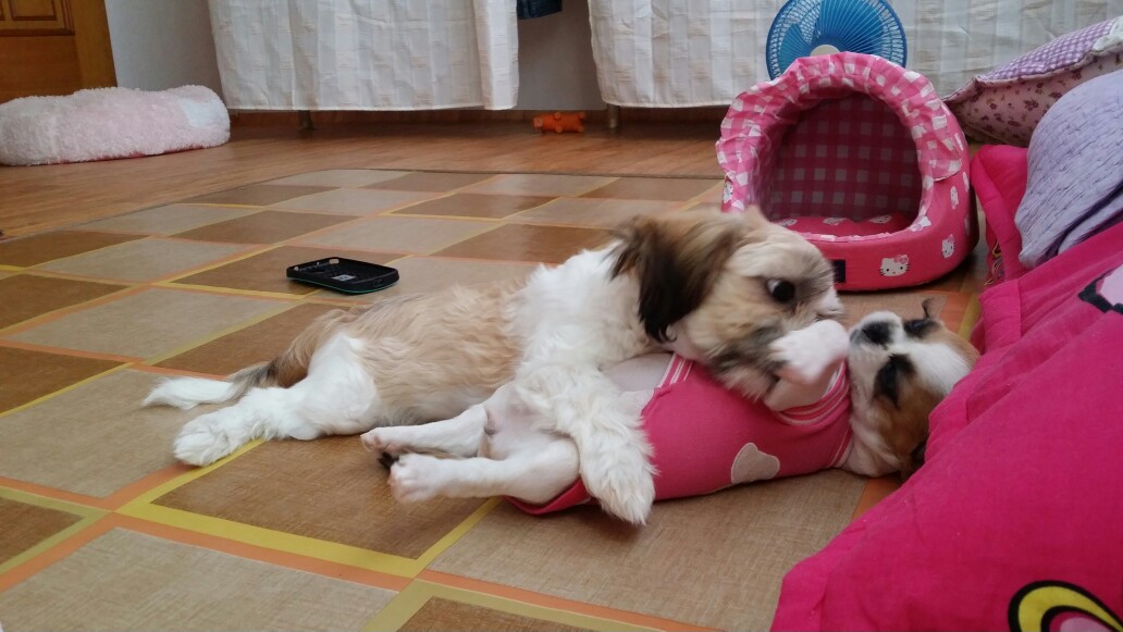 다시는강아지안키울거라했는데..제가우울증이와서신랑이안돼겠다싶어애기들둘분양했드라구요~지금은넘행복해요^^