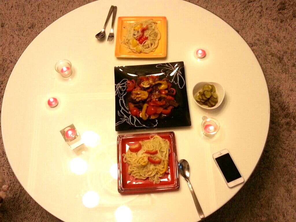 크림스파게티&찹스테이크 백일촬영 고생했다며 남편님이 해주심^^♡ 초는왜켜~ㅋㅋ