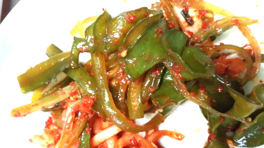 엄마가싸주신 생채에 속초식 미역줄기먹으며