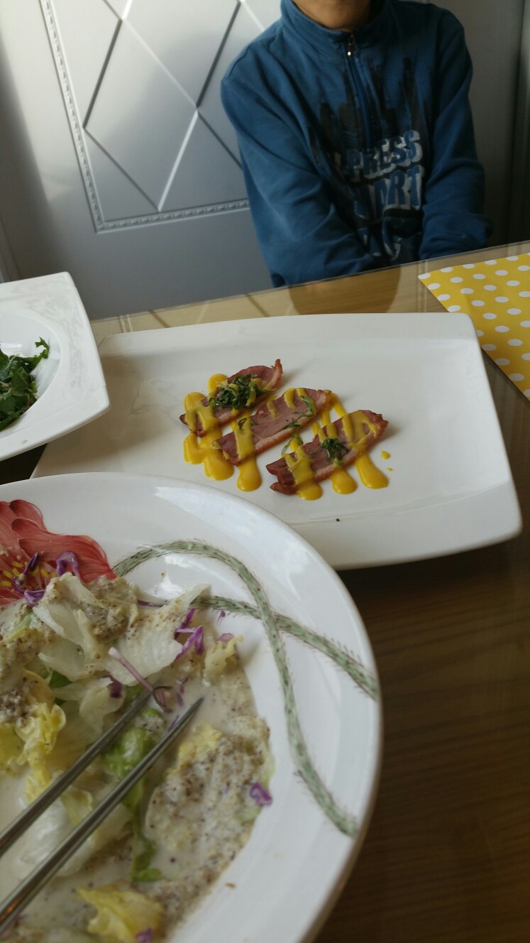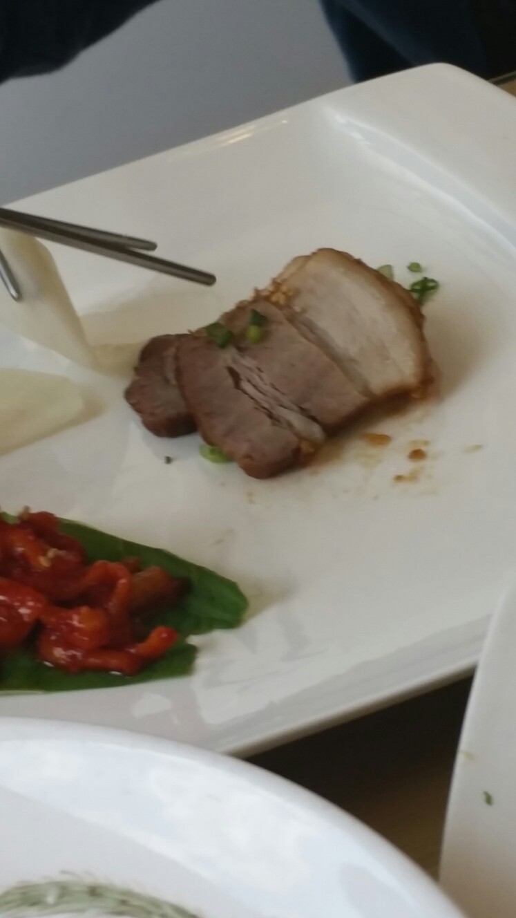 큰접시에 3조각있는것은 훈제오리인가요??맛있어보여요
