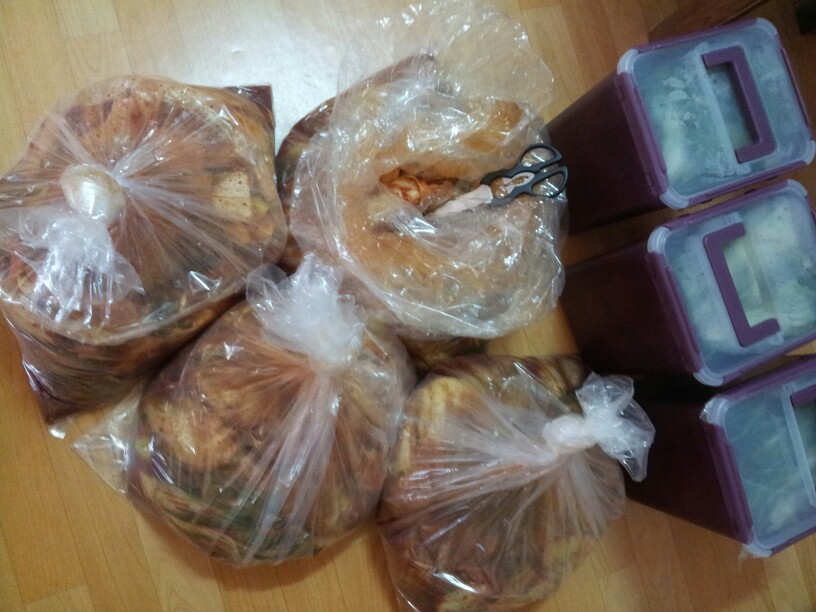김장김치사진을 보여드려야하는데 통에 다담고 파란배추잎으로 덮어놔서 몸이 안좋은관계로 그냥찍었어요.이해해주세요.^^