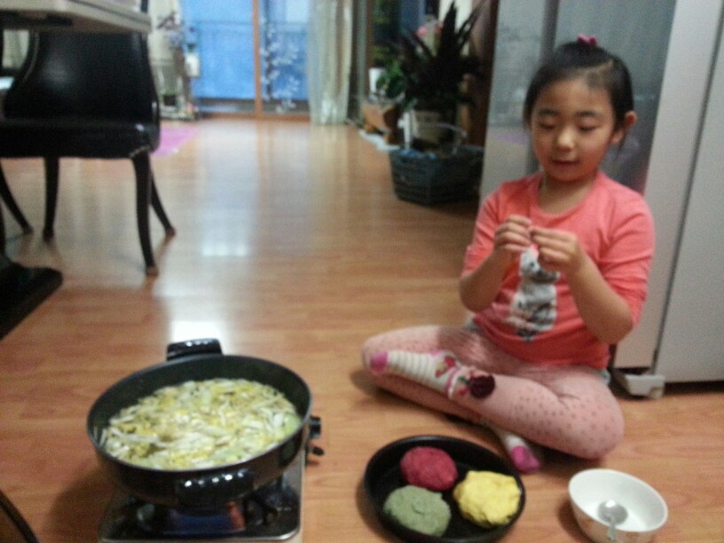에구~이뻐라~~엄마도와주나봐요~~ㅋ색이~넘이쁘네요~~끓이면알록달록~색만큼맛나겠떠용