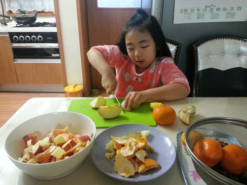 엄마위해서 과일 사라다 하는게여요 ㅎㅎ 이쁜 땔램 이군요