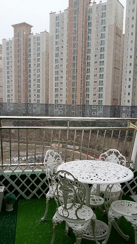 테이블 이뻐요. 눈이 휘날리다 지금조금 그쳤어요
