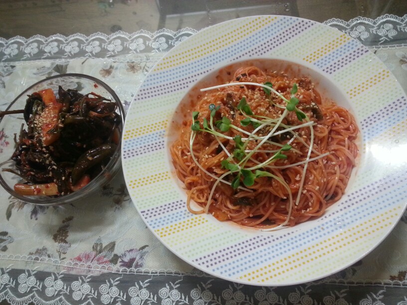 오늘 점심은 내가 좋아하는 김치비빔국수 만들고 친정 엄마가 만들어준 고추잎 무침과 냠냠~~