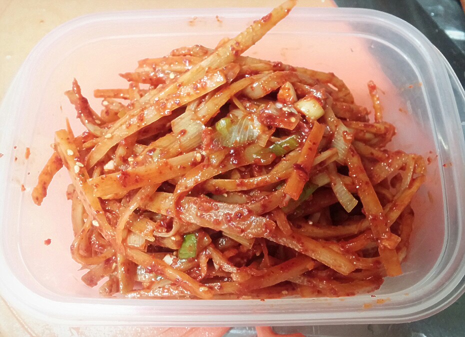 진짜빠르시네요ㅋ 근데 우엉무침은 기냥바로잘라서해요? 아님 살짝데쳐서?