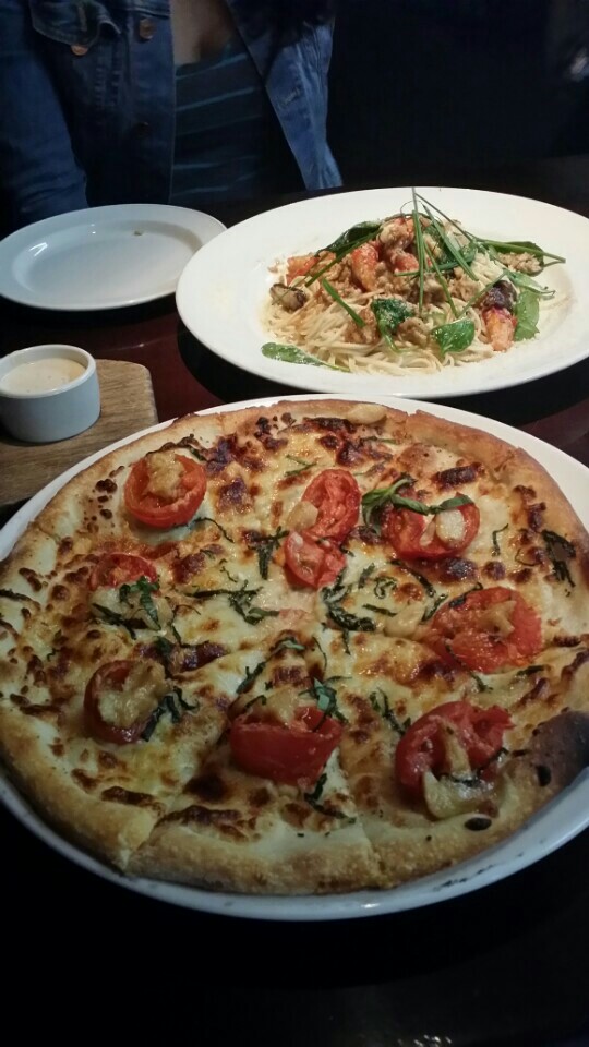 피자. 갈릭앤쉬림프누들. 어리언링. 정말 맛나네요