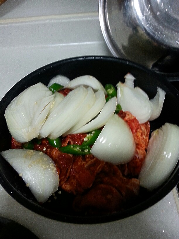 김치콩나물국과 대패삼겹넣고주물럭ᆢ