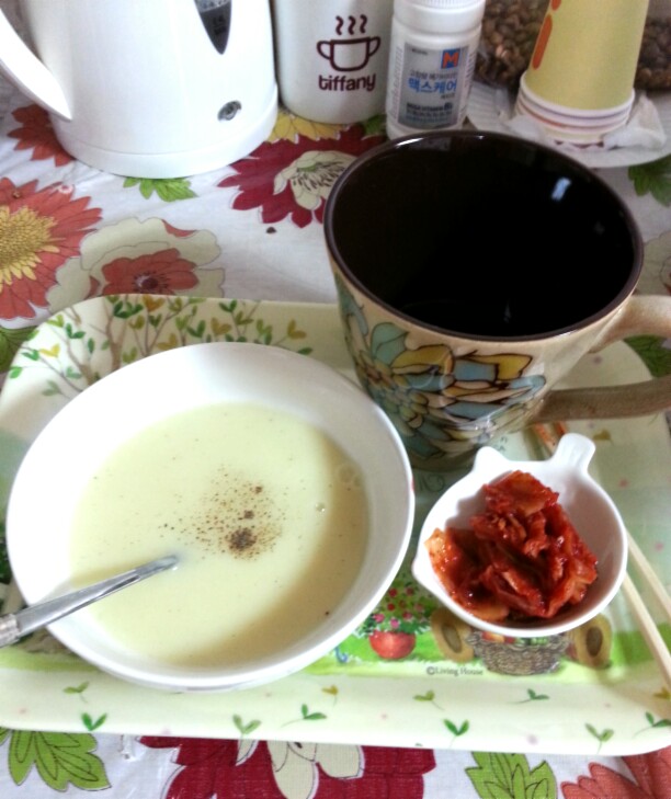 오늘김치찜해서 신랑밥주고 전 아야해서 술병이났는가ㅋ 밥도못먹고있는데 울신랑이 스프를끓여주네요 별거아닌거같으면서도감동받았네용ㅋ즐거운저녁되세용