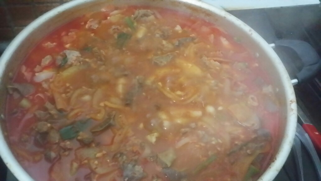 국이 정말 맛잇어 보여요 돼지 잡는날은 찬치죠