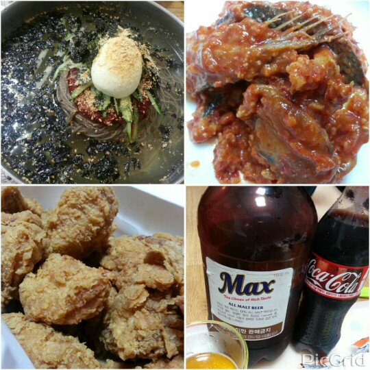 밤에 펜션에서 치콜맥~^^