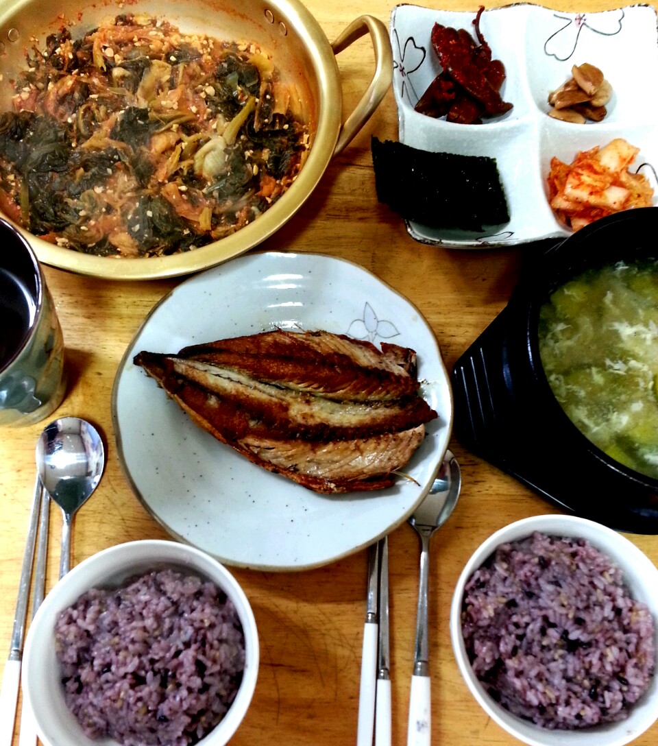 오늘아침겸점심 시래기지져 고등어구이와
