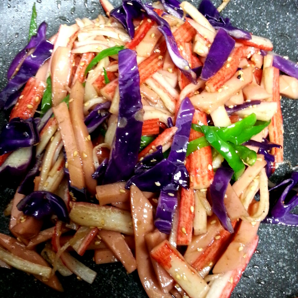 고등어조리구 맛살과야채넣구볶구 요래요래해서먹네요