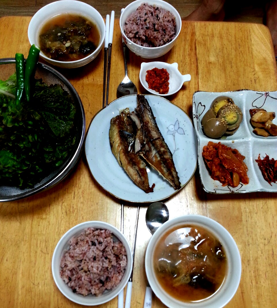 아침겸점심먹네용 고등어구이랑 상추쌈해서먹어용 맛있는점심식사하세용♡♡