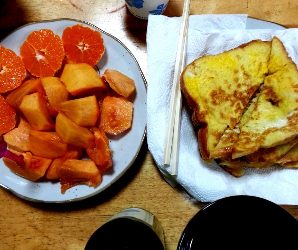 살짝출출하네요~~계란입혀빵굽고 감깎아서 참군이랑데뚜중이에용 다들아뇽히주무세용