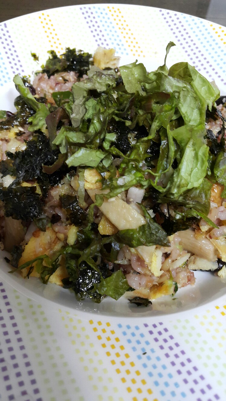 전 데워서 가위로 마구 자른담에 밥이랑 참기름 넣고 볶았어용~쫌 싱거운거 같아서 찰고추장에 비벼 먹었어용~^^