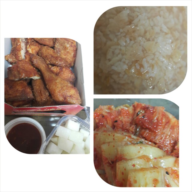 아들램이 치킨 먹고 싶다해서 남편두 늦게 들어온다고 하고해서 누룽지와 요래 먹어용~^^