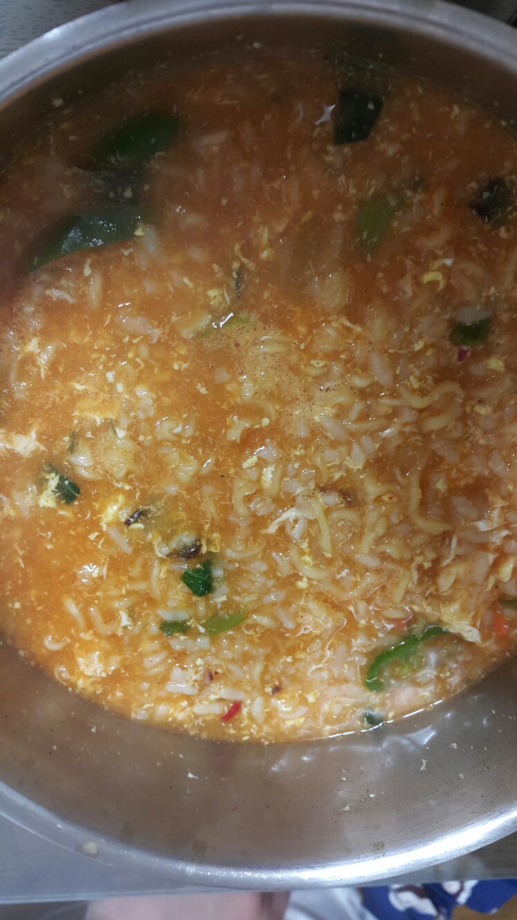 랑군님이 배고프다해서 상하이짬뽕밥 끓였는데 뭔가 부족한것같아서 컵라면 하나...계란하나... 청양고추하나 넣구 끓여주니 호록호록 ~~^^