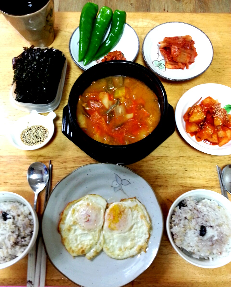 된장찌개에 쓱삭 비뵤서~~감자랑 달걀 우걱우걱 침이 꿀떡 넘인가욥