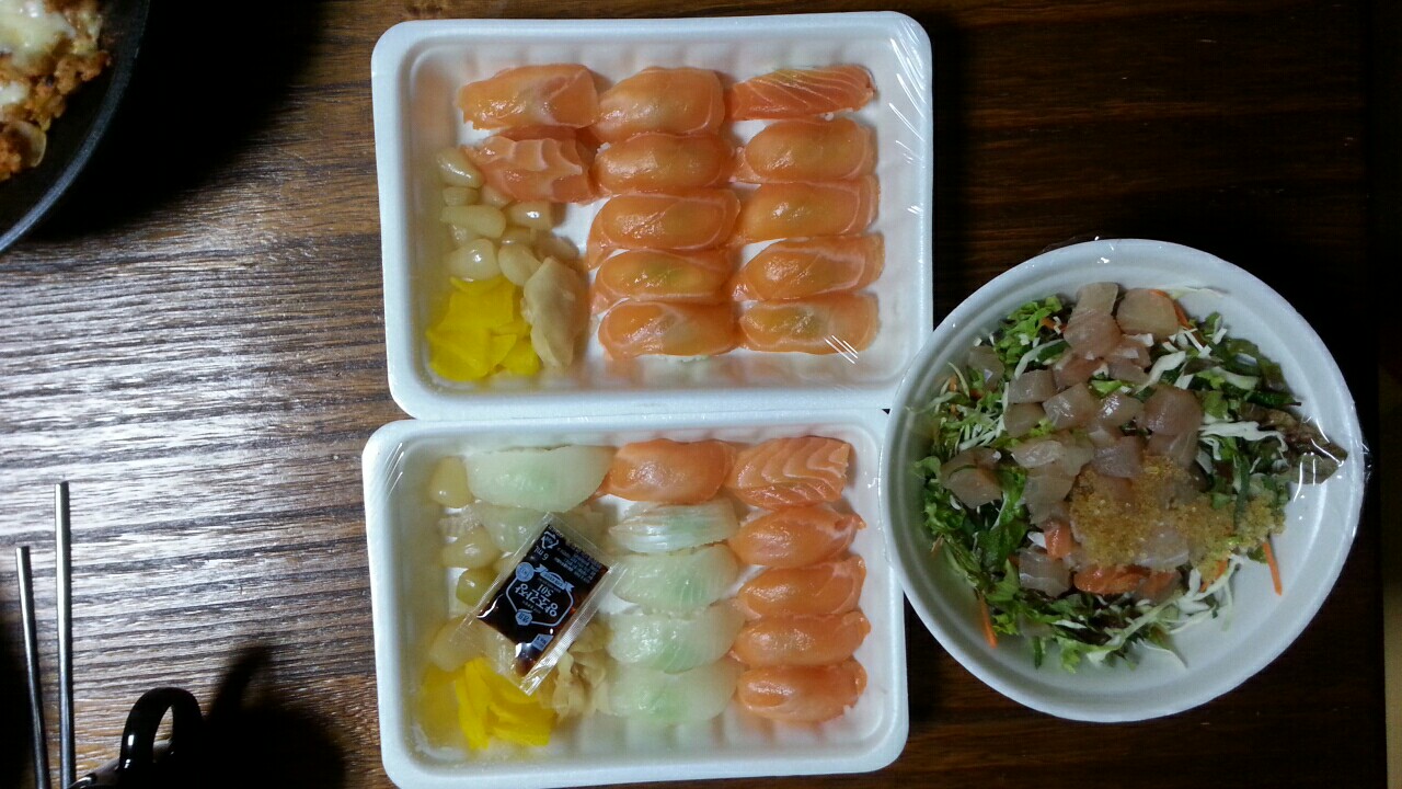 동태탕 끓여 신랑주고 나갔는데 초밥집이 생겨 회덮밥과 좋아하는 연어만 잔뜩 사서 ~~^^* 저녁먹네요~ 식사하셨나요?