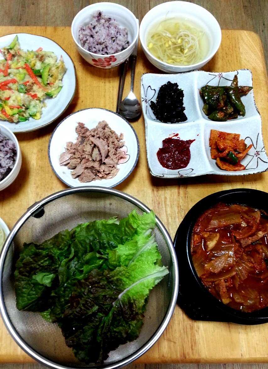 콩나물국끓이고 어제호박전반죽이좀남아 한장부치고 고추찜해서 있는반찬에대충먹네용