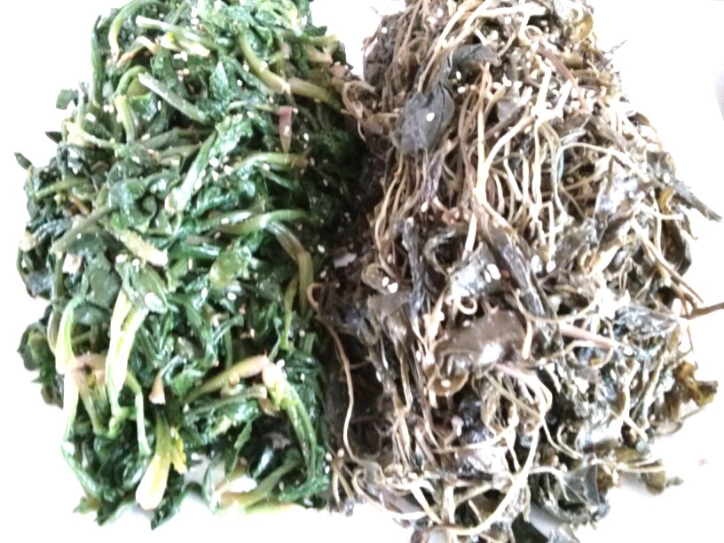 시금치나물무침과 건취나물무침 ㅇ비나다.