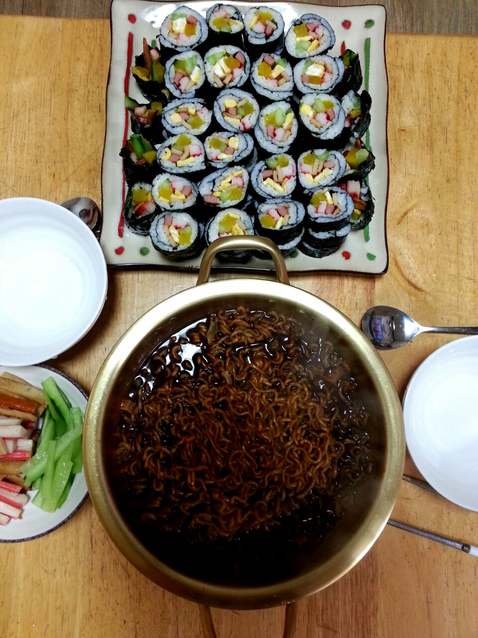 와.....김밥에 짜파게티 고구마 짱입니다요