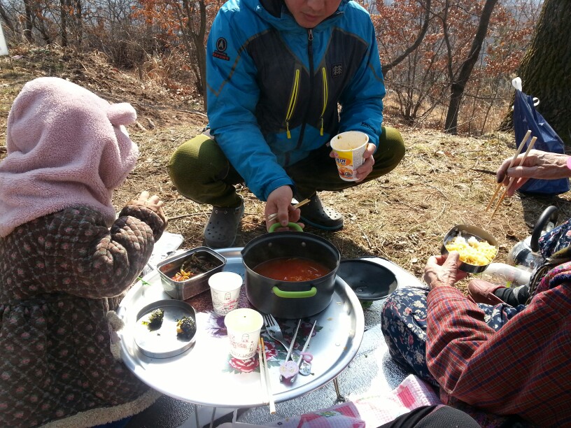 시엄니와 나드리 왔었요 쑥도케고 라면면도 끓여묵고 계란만 넣은 도시락도 까묵고ㅋ 날이 넘 따듯하니 좋내요 만레님들 즐점하셔요~^^