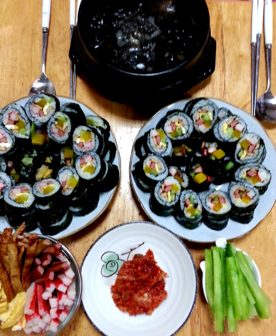 오늘아침입니당 간단히김밥싸고 멱국조금끓여먹네요^^즐거운하루되세용♡♡