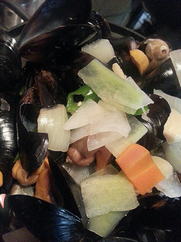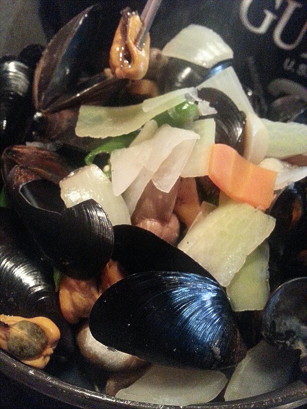 나중엔다먹긍 우동사리나 라면사리넣어먹는다는데 홍합이랑골뱅이가많아서 먹다지치죠ㅋㅋㅋ껍데기가~~ㅎ