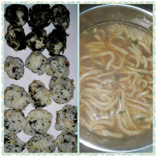 오늘 아침은 초간단~아빠우동+주먹밥~^^♥