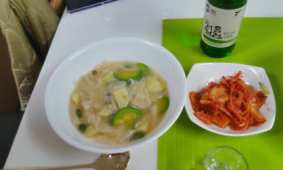 꿩 대신 닭으로 밀가루 반죽 대신 만두피로 수제비 끓여서