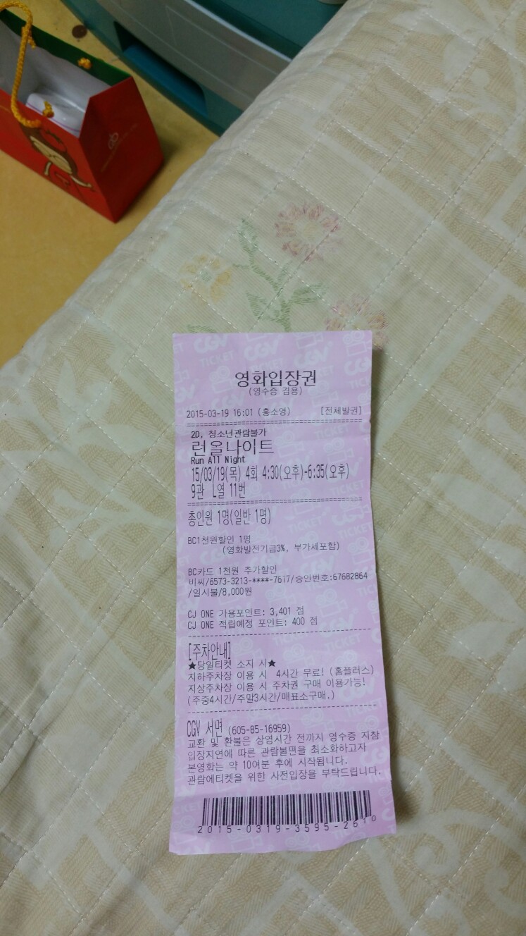 가방에 지갑넣다가 나온 영화티켓 어제 친구랑 같이본영화티켓이네요ㅋㅋ