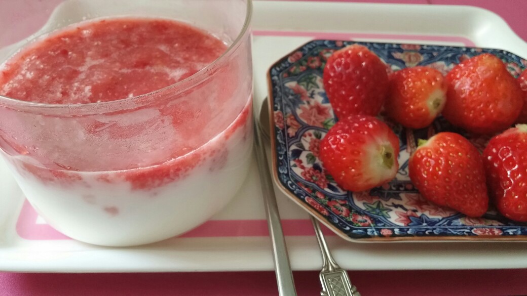 집에서 직접만든 수제요거트와 설탕과 물한방울 안들어간 딸기퓨레~♥♥딸기제철이라서 행복하네요~~