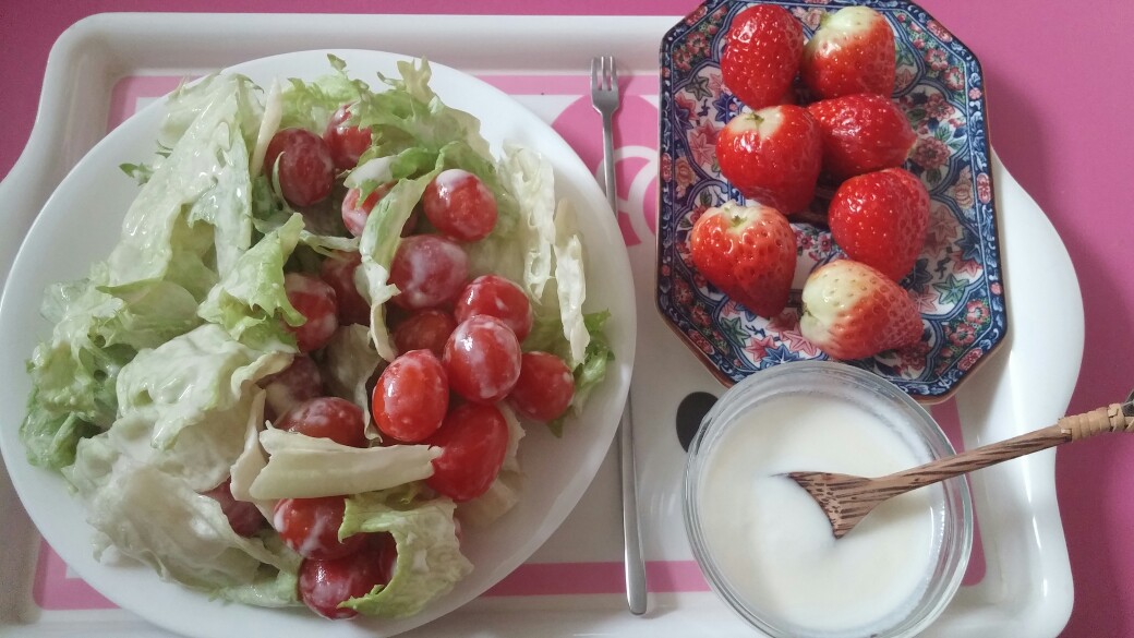 두부마요네즈를 곁들인 샐러드와 수제요거트랑딸기~~