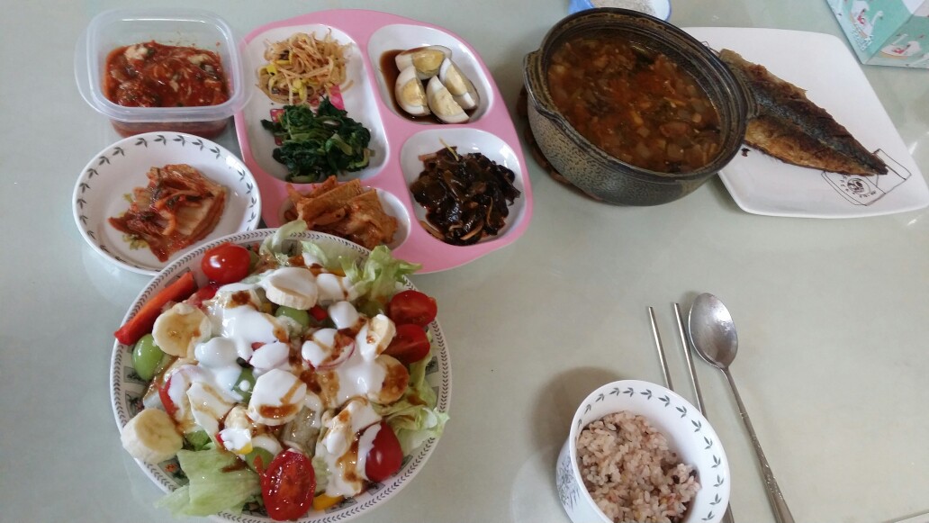 친구~~~샐러드 고등구이 맛나겠옹...반찬도 많으넹..~^^~