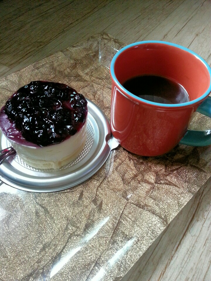 치즈케익에 블루베리 얹어서 달콤하니 맛나겠어.