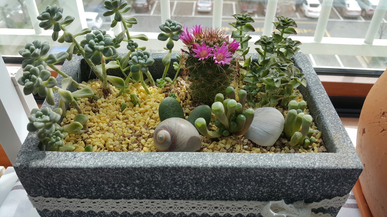 화분만 쪼메 비싸구..다육이는 길가다 하나씩 사서 심었어요..천원에서 만원정도 사이가격이요..오른쪽에 콩나물같이 생긴게 만원짜리..