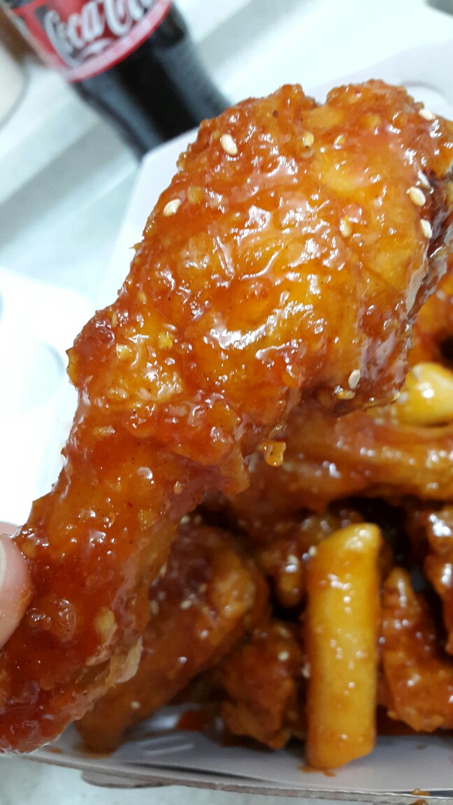 남편 출장가고 밥하기싫어서 치느님 모셔왔어요 ㅋㅋ 역시 불금엔 치느님♡아들 재우고 만레보며 닭다리 하나 뜯어 봅니당^0^